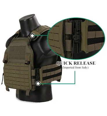 * Sistema de hebilla de liberación rápida en la banda del hombro y la cintura. ¡Solo Tire y el chaleco se puede quitar!