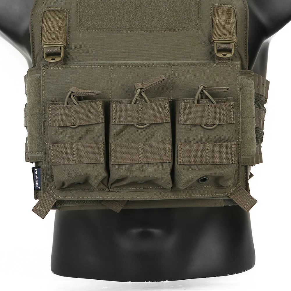 El portador de placa Emersongear 420 está equipado con una bolsa de cartucho triple desmontable en la parte delantera del abdomen, que puede reemplazar otros paneles de soporte modulares. El sistema MOLLE en el exterior de la bolsa de cartucho puede llevar equipo personalizado. La parte posterior también admite la carga y el desmontaje de paneles modulares, que pueden satisfacer las necesidades de diferentes ocasiones y tareas. La bolsa con cremallera en el pecho puede proteger sus pertenencias personales de daños. El velcro en los paneles delantero y trasero puede pegar y fijar insignias, letreros, luces de señalización y otros equipos que se pueden pegar. Emersongear 420 Plate Carrier adopta tres líneas de estructura de correas, cada correa está equipada con refuerzo de compresión, y la malla de vadeo se coloca entre las correas, lo que logra un equilibrio perfecto entre peso ligero y resistencia. La correa para el hombro se actualiza del diseño de la correa 419 al material compuesto de TPU, Que no es reflectante y tiene una mejora correspondiente en la calidad.