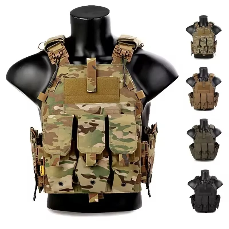 El chaleco táctico estilo 094k versión funcional de liberación rápida Emersonear es un chaleco táctico todo incluido de gran superficie, que está equipado con una funda frontal de triple cartucho *1.El chaleco está equipado con un sistema de carga modular MOLLE en un área grande, lo que resulta conveniente para agregar bolsas de accesorios en cualquier momento.El material es un material de regulación militar Cordura 500D, que tiene las características de resistencia al desgaste, resistencia al aceite y resistencia al desgarro.El cinturón de hombro y el cinturón abdominal del chaleco están unidos por un cierre de liberación rápida unidireccional, que realiza una liberación rápida, un funcionamiento sencillo y silencioso. Aumenta en gran medida la durabilidad del chaleco.