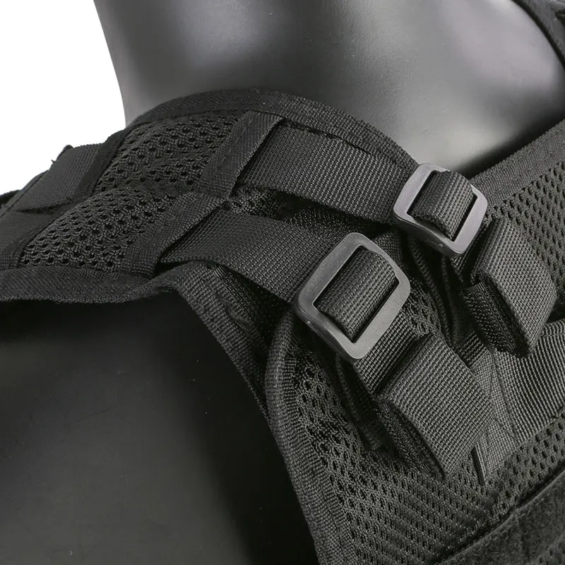 Modularidad: la parte delantera y trasera están compuestos por un molle de correas horizontal de 1 pulgada, que se puede combinar con una bolsa de accesorios del sistema (bolsa de agua/bolsa de felicitación/bolsa de revistas/bolsa de intercomunicación/bolsa médica, etc.)