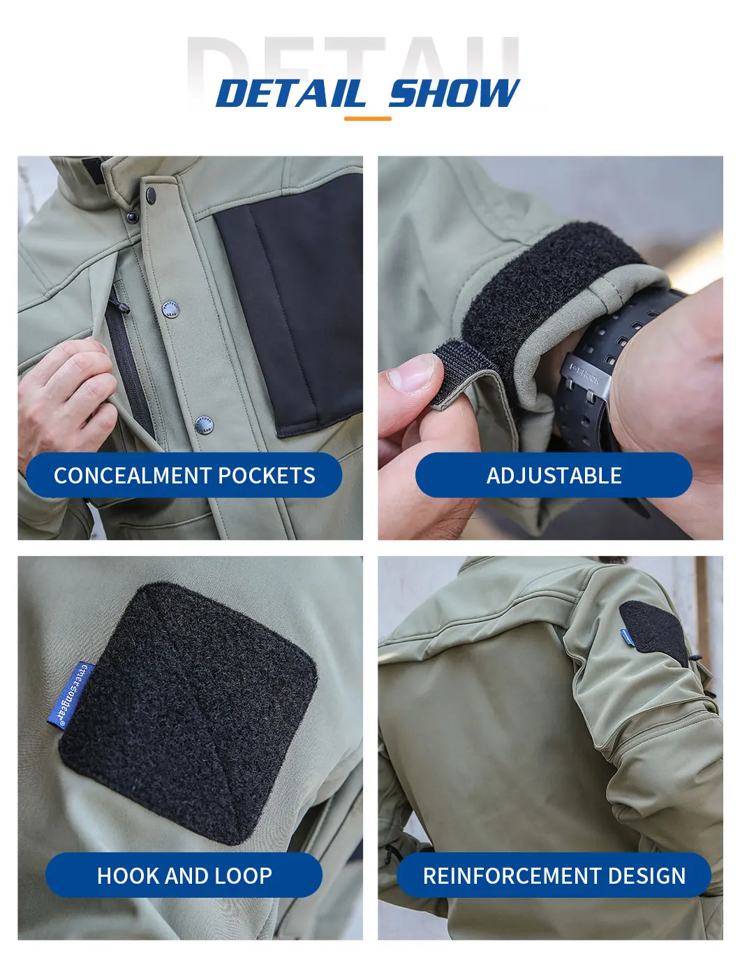 Contraste de color táctico: los bolsillos izquierdo en el pecho y los brazos utilizan materiales de color de contraste para hacer que el producto tenga más capas.