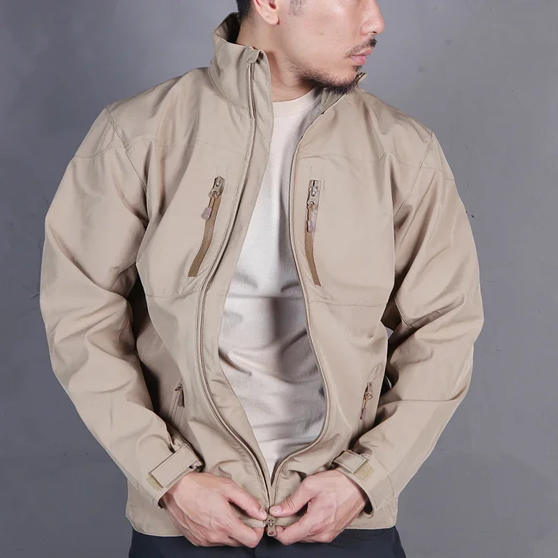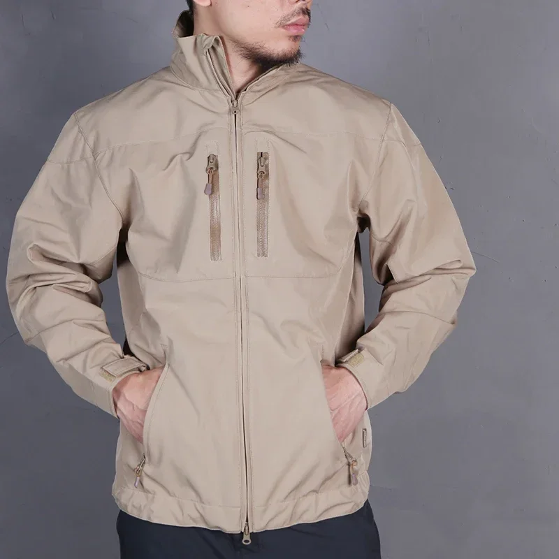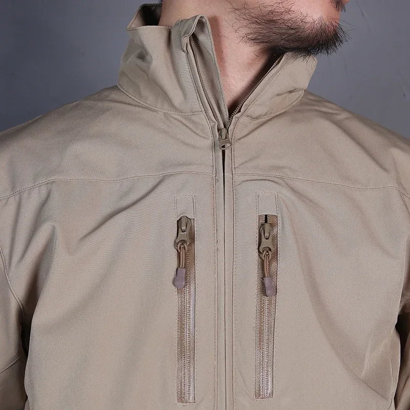 La chaqueta cortavientos/FG de carcasa suave adopta materiales compuestos y tecnología de torneado de precisión, la tela es liviana y delgada y el cuerpo se siente cómodo.Tiene un buen rendimiento en caso de viento y lluvia y es especialmente adecuado para escenas tácticas y exteriores.El centro de la chaqueta está equipado con 4 enormes cremalleras centrales impermeables, que son capaces de peinar.