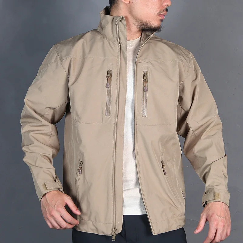 La chaqueta cortavientos/FG de carcasa suave adopta materiales compuestos y tecnología de torneado de precisión, la tela es liviana y delgada y el cuerpo se siente cómodo.Tiene un buen rendimiento en caso de viento y lluvia y es especialmente adecuado para escenas tácticas y exteriores.El centro de la chaqueta está equipado con 4 enormes cremalleras centrales impermeables, que son capaces de peinar.