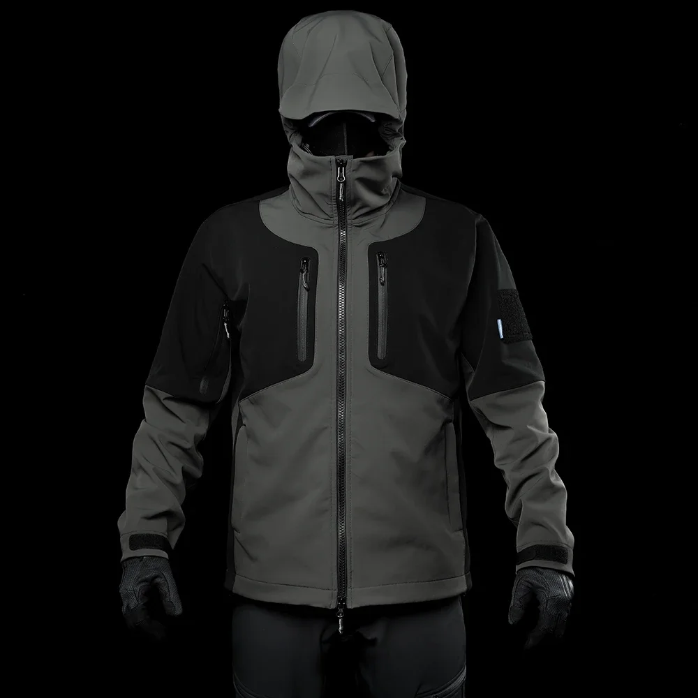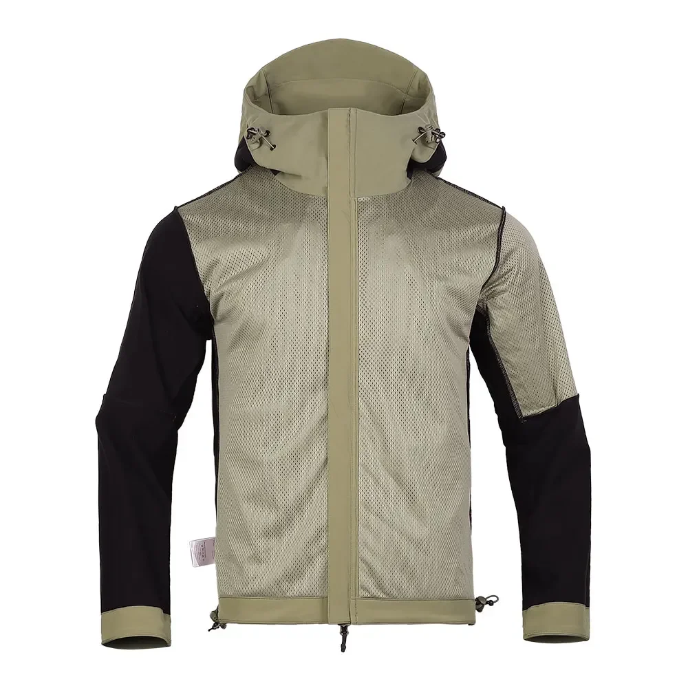 4. Diseño de capucha: La capucha puede acomodar un casco para evitar el inconveniente de quitarse los cascos en diversas situaciones, como tácticas, escalada, montañismo, esquí y ciclismo. La capucha está equipada con tres cordones ajustables en la parte posterior y en ambos lados para un mayor ajuste.