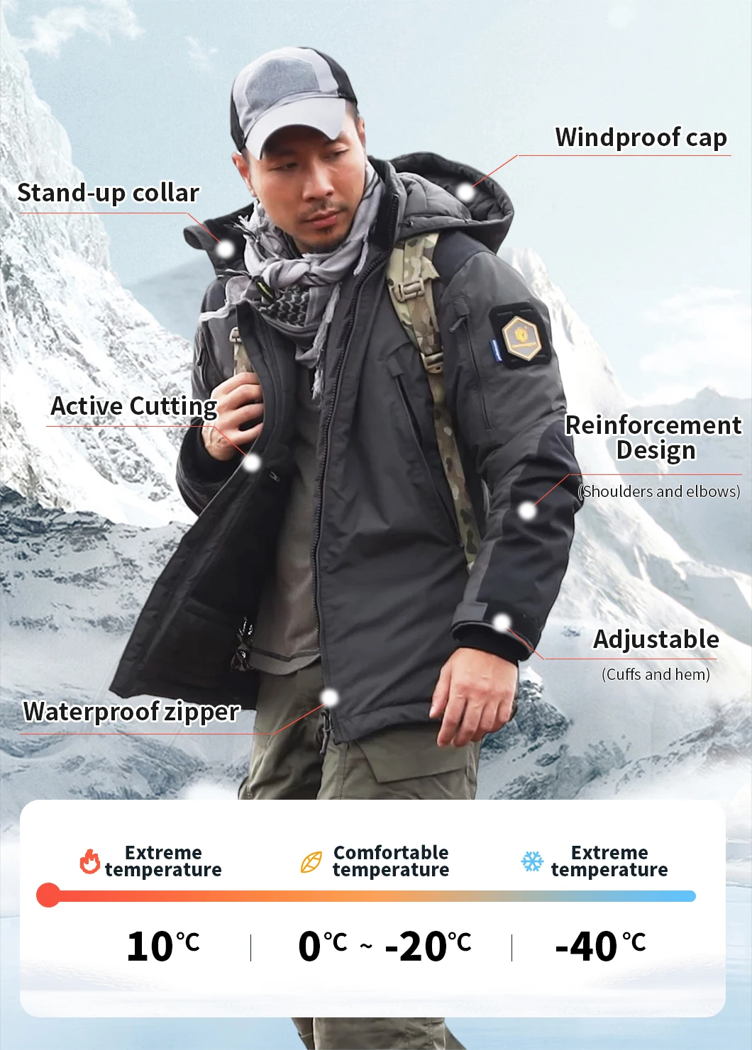 2.Costuras funcionales: Las partes activas de la cabeza, las manos y los hombros están hechas de material compuesto de aislamiento térmico de tres capas para evitar que la tela sea demasiado pesada y afecte las actividades.La parte del torso está rellena de material de aislamiento térmico de algodón y el empalme general garantiza el calor del torso sin afectar la actividad.