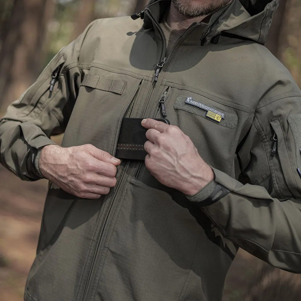 Emersongear-chaqueta táctica Mosasaur con etiqueta azul, abrigo elástico de corte ergonómico, Camping, senderismo, caza, deportes al aire libre EMB9736