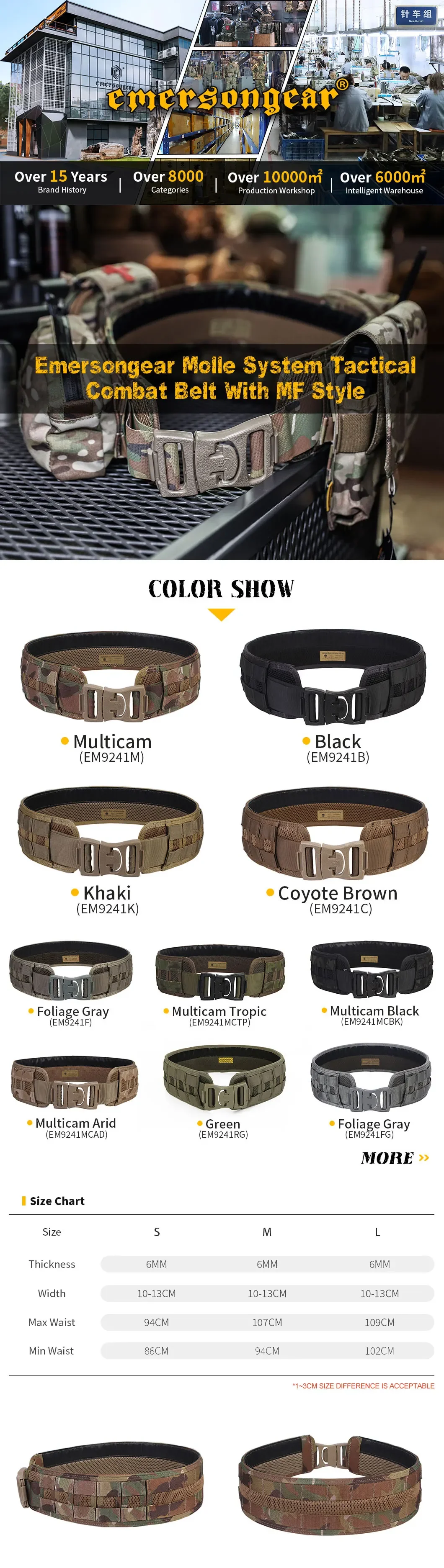 Emersongear cintura táctica MOLLE cinturones de utilidad con soporte de carga Emerson combate acolchado patrulla correa de cintura entrenamiento al aire libre nailon