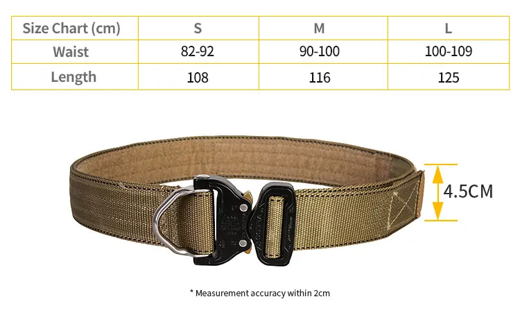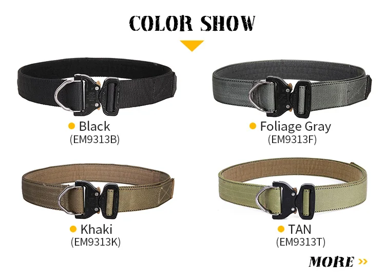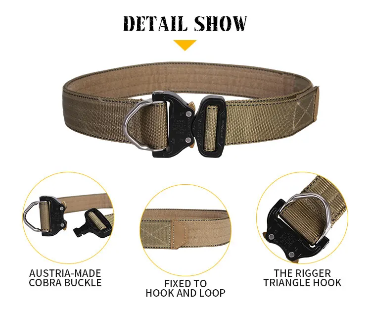 EmersonGear BuckleCobra D-Ring Riggers Belt está hecho de correas con regulaciones importadas, que tienen las características de resistencia a la abrasión, resistencia al aceite, etc.La hebilla del cinturón adopta "BuckleCobra" del origen exterior austriaco "cierre BuckleCobra, ¡su tensión horizontal puede alcanzar 1,8 toneladas!El ancho del cinturón es de 1,75 pulgadas, lo que puede ser compatible con la mayoría de los pantalones tácticos y de cercanías.Ha logrado un equilibrio perfecto en capacidad de carga y comodidad.El cinturón está hecho de costura de precisión para cumplir con los requisitos de uso de alta resistencia.El automóvil en el interior del cuerpo del cinturón tiene una cara completa de presilla, que se puede utilizar como sello de cintura táctico junto con el cinturón interior con presilla de doble cara.