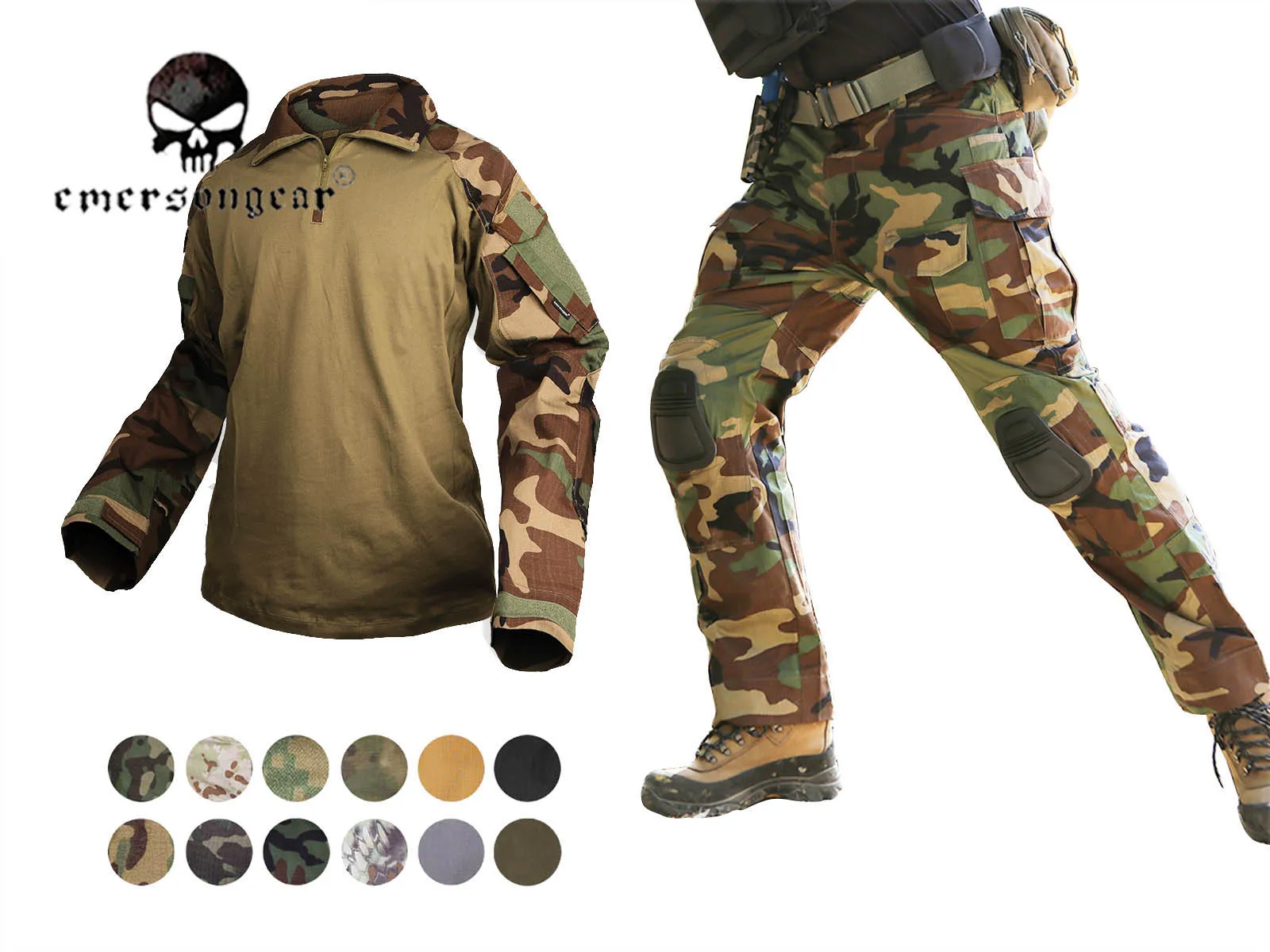 El paquete incluye: 1 juego de uniformes de combate táctico Emersongear G3 (con rodilleras)