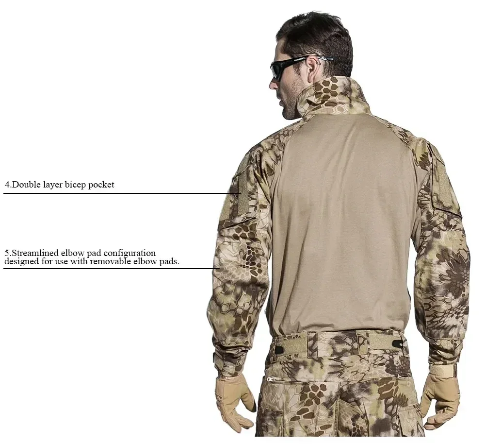 El paquete incluye: 1 juego de uniformes de combate táctico Emersongear G3 (con rodilleras)
