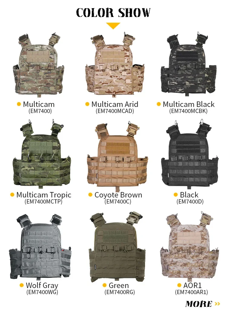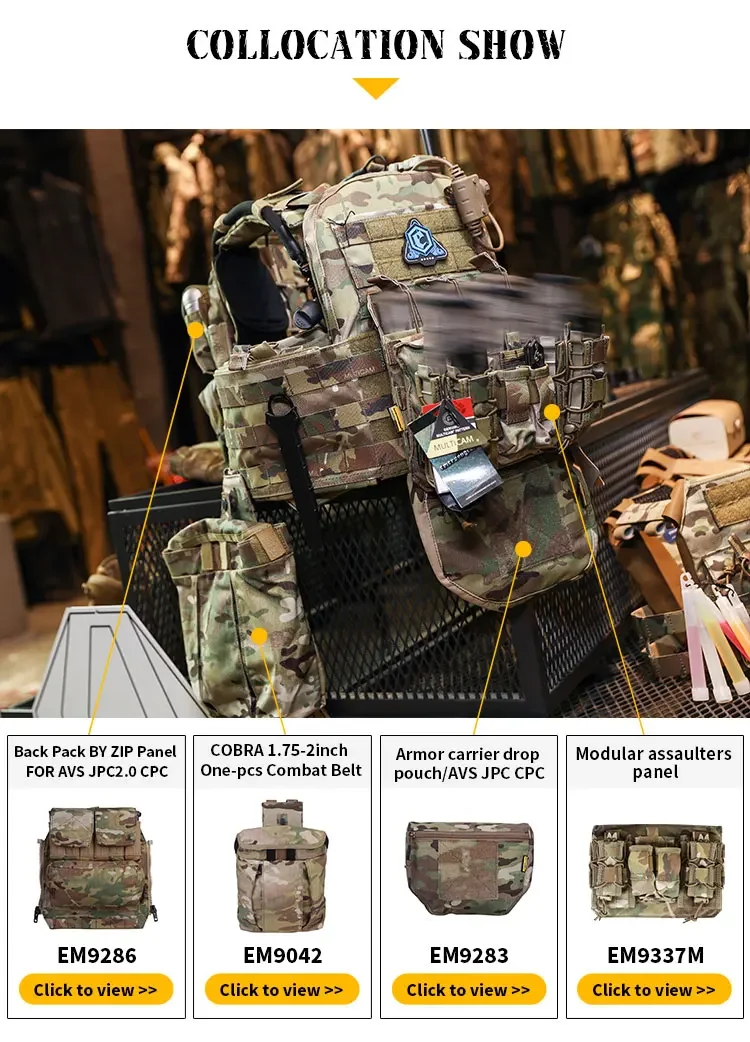 El diseño modular del chaleco CPC puede separar las piezas y convertirse en accesorios independientes.El producto está equipado con paneles delantero y trasero, estructura trasera, hombreras y cables de acero de doble liberación rápida.El panel frontal molle está equipado con un triple cargador con estructura de "bolsa de rata".Además, hay un cojín de esponja en el interior de la parte posterior del chaleco, que garantiza la comodidad de carga y aumenta la circulación del aire de la espalda.