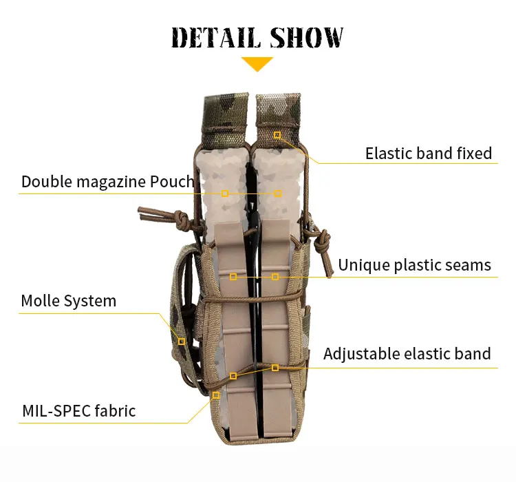 EMERSONGEAR Bolsa para revistas de rifle modular doble Airsoft, utilidad de caza MOLLE Multicam, juego Mag, camuflaje ligero