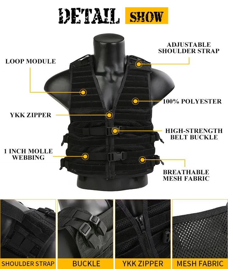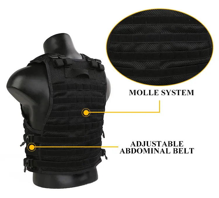 Diseño transpirable y liviano: el material principal de todo el chaleco está cubierto con una malla de poliéster de alta resistencia, que reduce en gran medida el peso original del chaleco y es extremadamente transpirable.