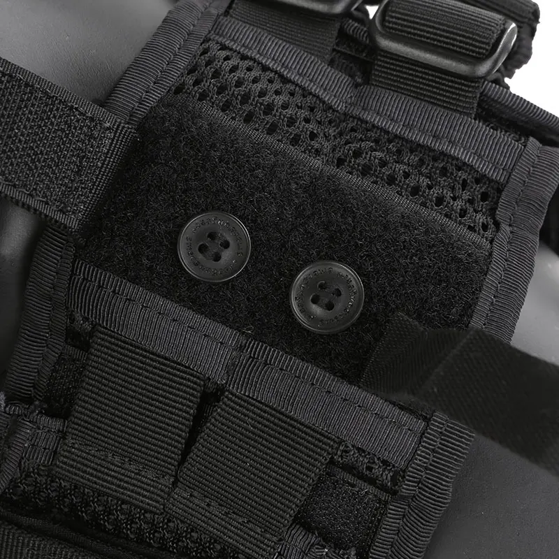 Tela resistente al desgarro: la carcasa está hecha de material de malla de poliéster de alta resistencia + correas de 1 pulgada, y el cabello mágico en la superficie del topo se puede pegar con insignias de policía.