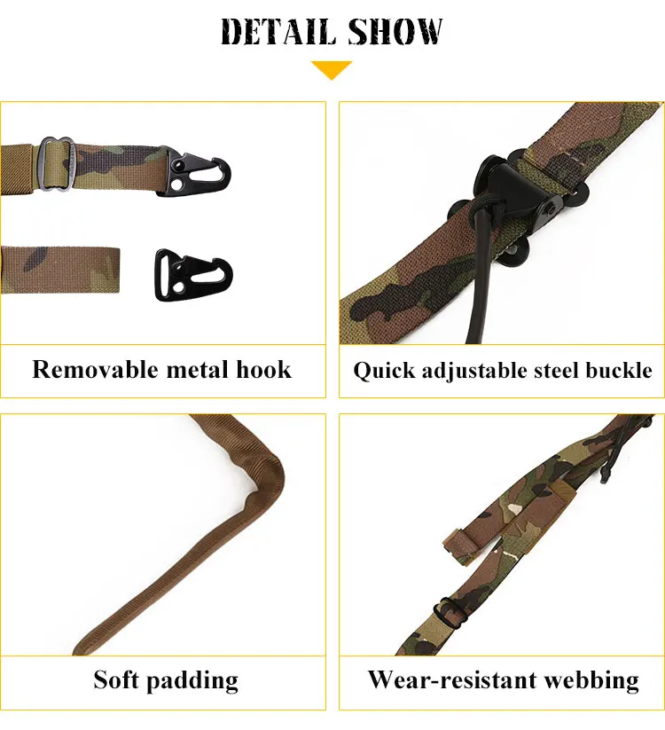 2.regulations material: the gun sling is made of regulations material, which has the characteristics of high strength, abrasion resistance and oil resistance