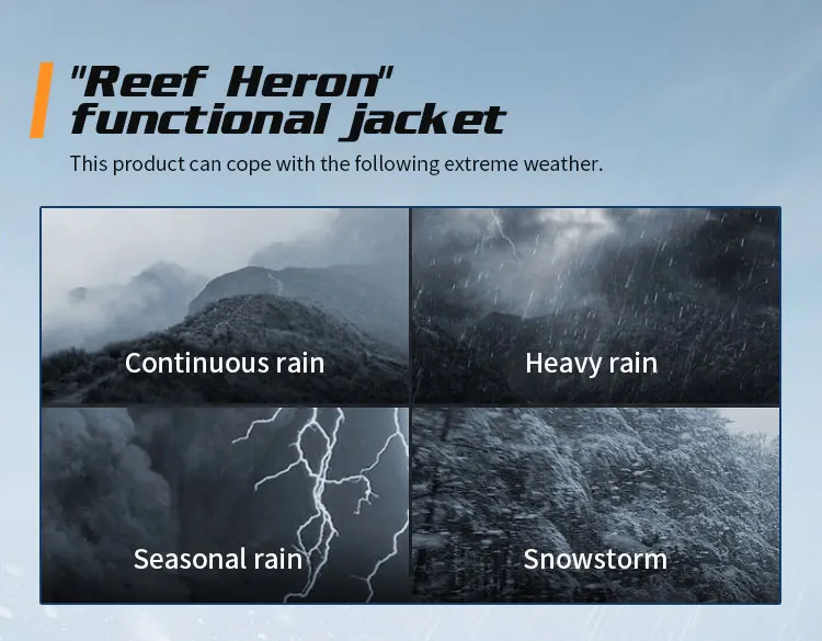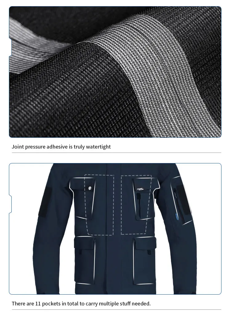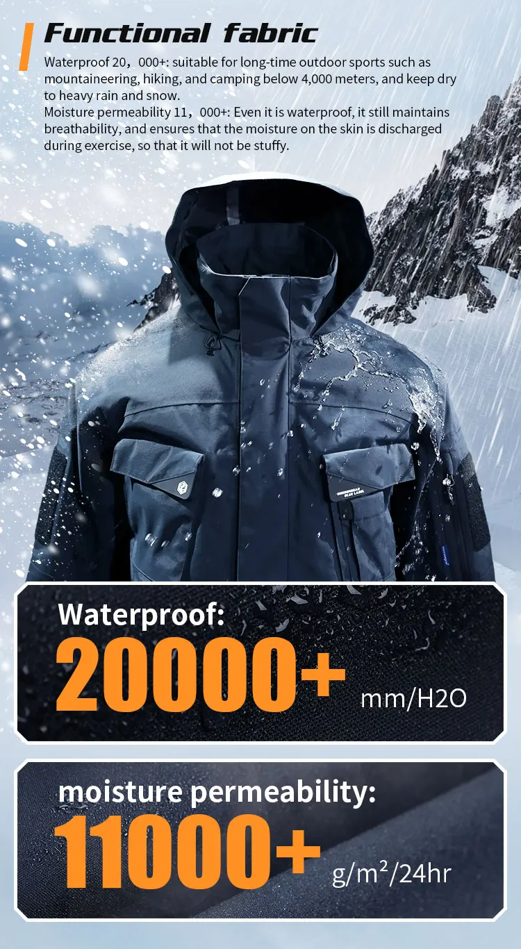 Función: Ergonomía/Índice de impermeabilidad 10000+/Índice de permeabilidad a la humedad 5000+/Diseño de múltiples bolsillos/360° Totalmente impermeable