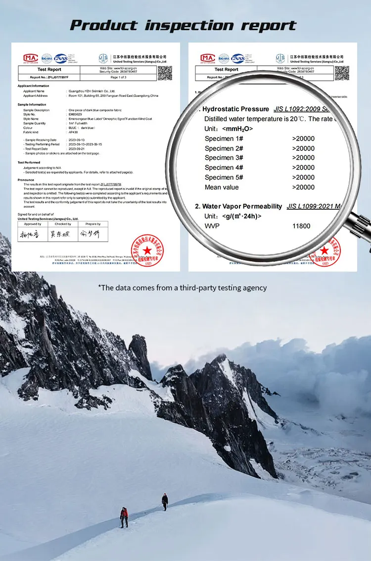 Índice de permeabilidad a la humedad de 5000+: Mantiene una transpirabilidad efectiva incluso en condiciones de impermeabilidad fuerte, asegurando la descarga de vapor de agua en la superficie de la piel durante el ejercicio, evitando la congestión y proporcionando una sensación corporal cómoda.