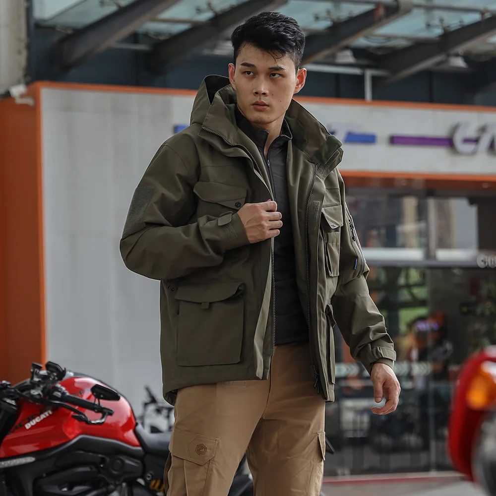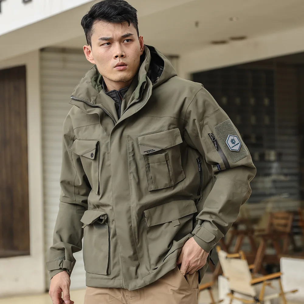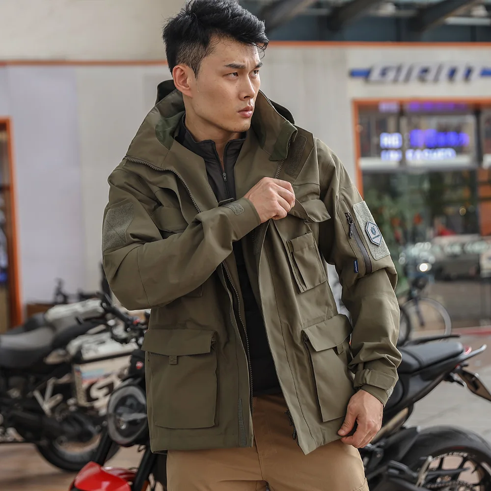 3. Versión de corte entallado: se puede utilizar con varias capas interiores (como ropa interior térmica, suéteres, chaquetas de lana, chaquetas de algodón de capa intermedia, etc.), y la característica sobresaliente es que la apariencia visual aún tiene un efecto adelgazante, rompiendo la impresión suelta de las carcasas duras tácticas y exteriores de otras marcas.