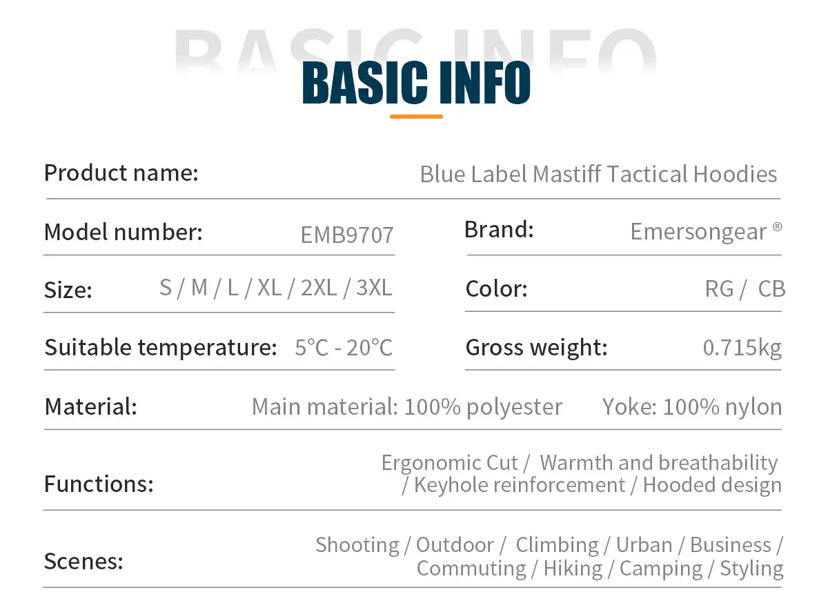 Emersongear etiqueta azul Mastiff sudaderas con capucha tácticas suéter chaqueta cálida abrigo de corte ergonómico deportes al aire libre Camping senderismo caza - imagen 5