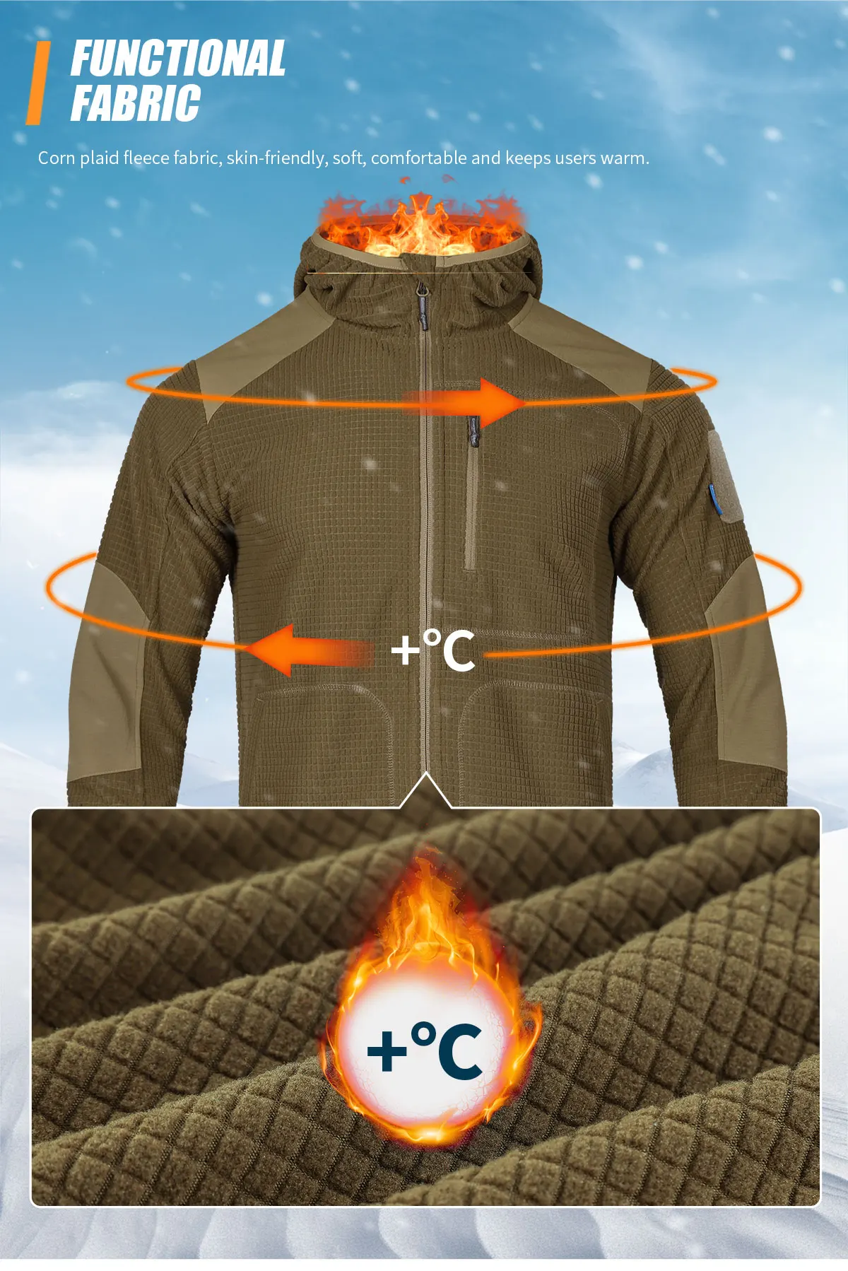 Función: Corte ergonómico / Calidez y transpirabilidad / Refuerzo de cerradura / Diseño con capucha