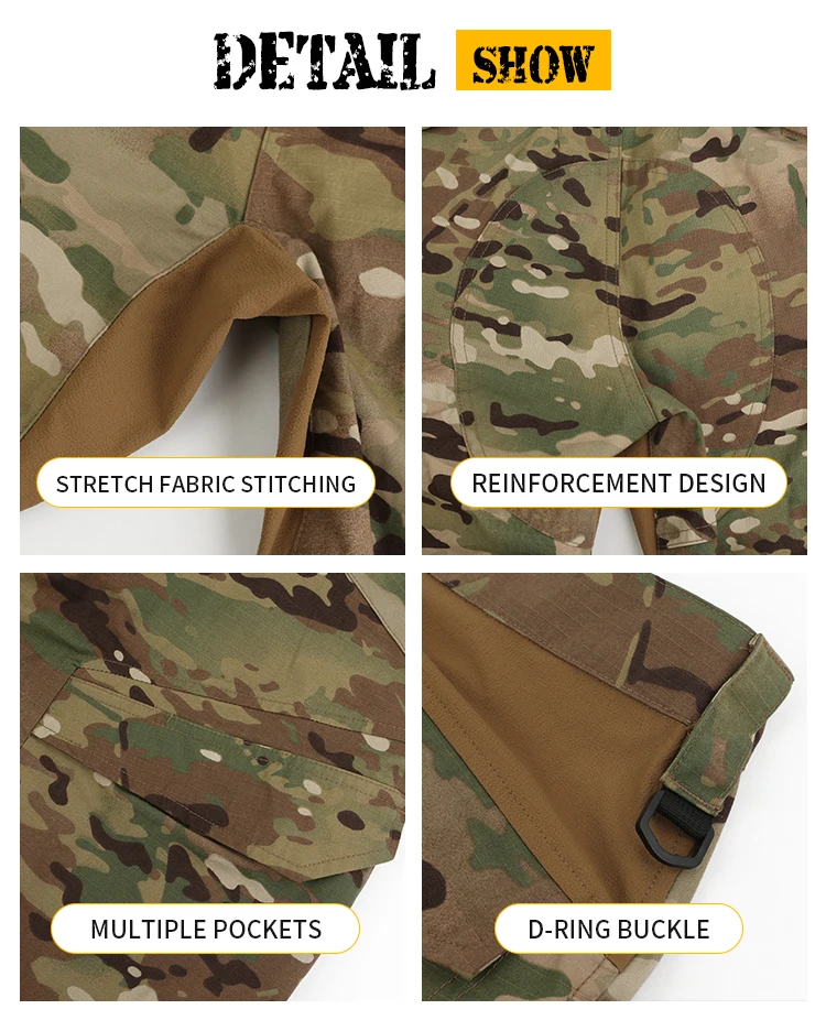 Diseño de sastrería: sastrería ergonómica, la cintura y la entrepierna traseras están cosidas con telas de nylon Cordura de alta elasticidad para reducir la sensación de restricción durante los grandes movimientos.