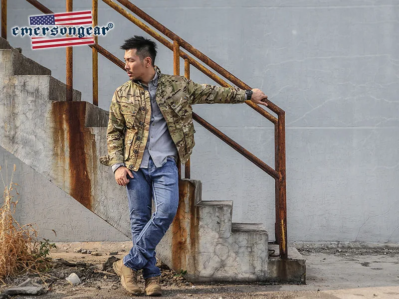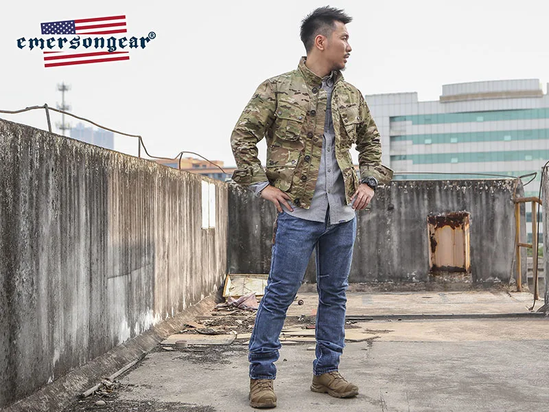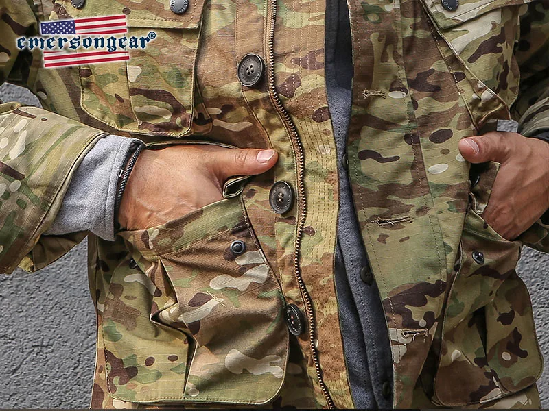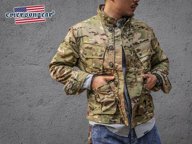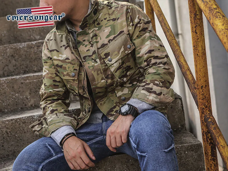 Emersongear-chaqueta térmica TCU táctica con etiqueta azul para hombre, chaqueta Vintage informal para senderismo al aire libre, tela de nailon Multicam EMB6865