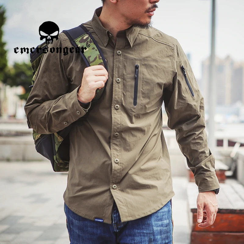 EMERSONGEAR Blue Label Tactical Triple Tech Tac-Shirt Outdoor Training Airsoft Shooting Hunting Multi Pocket Men T-shirt Long Sleeve