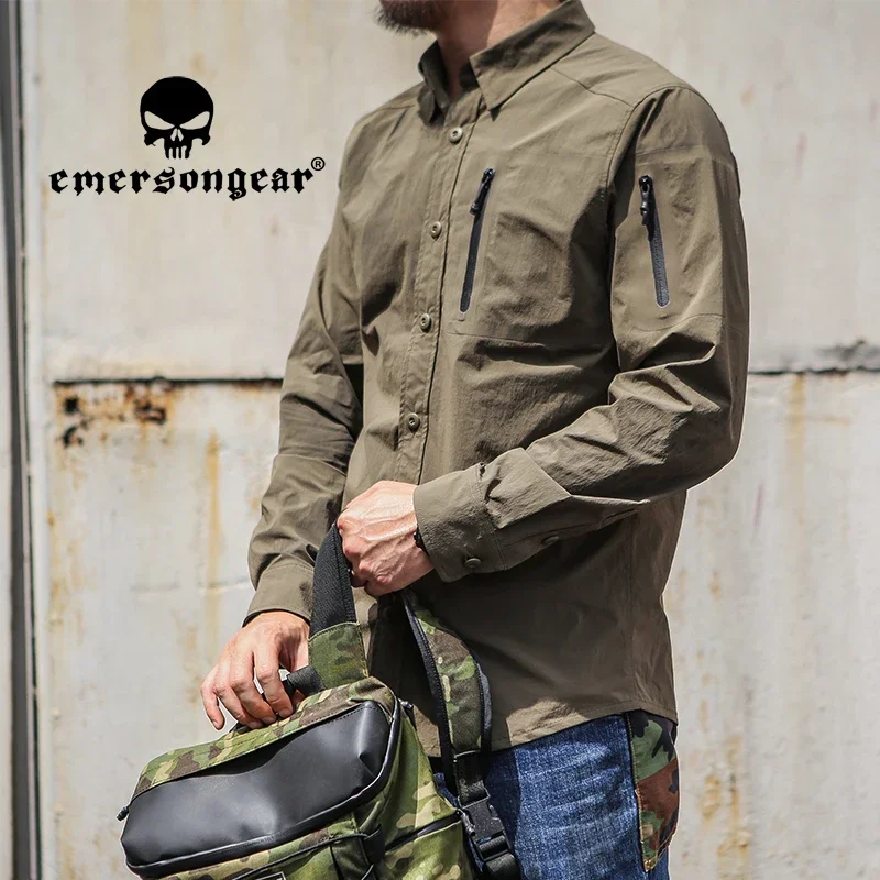 EMERSONGEAR Blue Label Tactical Triple Tech Tac-Shirt Outdoor Training Airsoft Shooting Hunting Multi Pocket Men T-shirt Long Sleeve