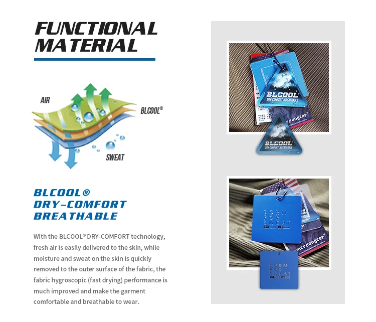 Al comienzo del diseño de la camiseta táctica BlueLabel UMP Frogmen, para que la camiseta táctica sea más posible, utilizamos materiales guía única para que el producto principal tenga la función de "secar unidireccional", de modo que el sudor en la superficie de la piel se puede descargar rápidamente a través de la línea guía de humedad para mantener el cuerpo seco y cómodo.