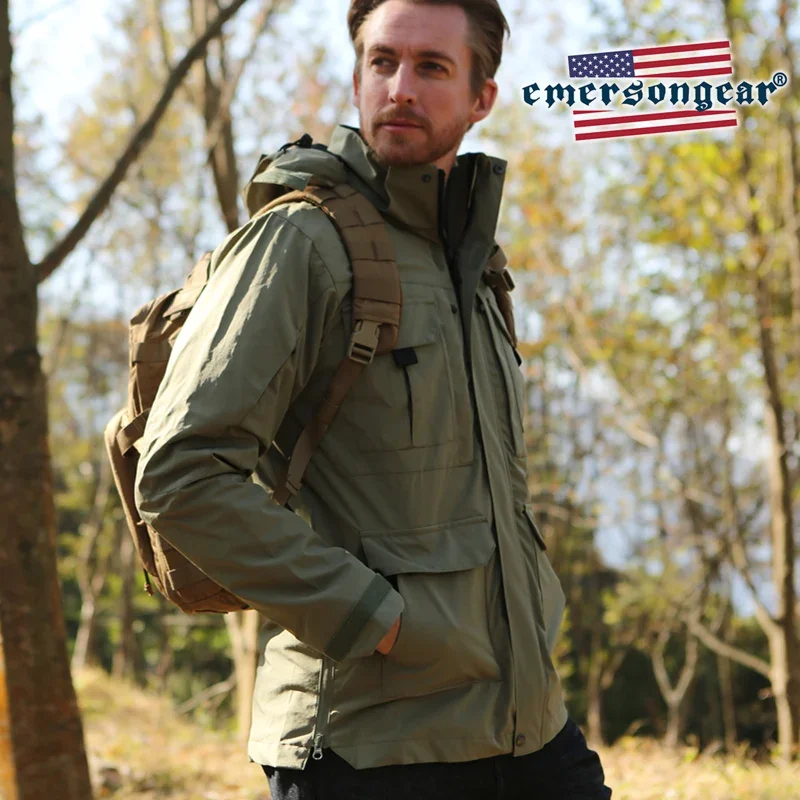 Emersongear serie de etiquetas azules, susurro de viento táctico, chaqueta para todo tipo de clima, abrigo suave a prueba de viento, combate, ciclismo al aire libre, senderismo, caza EMB6821