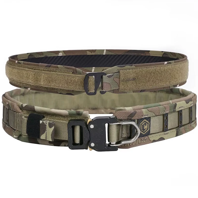 Tanto la cintura interior como exterior del producto se pueden ajustar en términos de dimensiones de uso.La cintura interior tiene dos dimensiones ajustables para elegir, lo que permite a los usuarios con diferentes tamaños de cintura mantener una pequeña cantidad de cinturón después del ajuste.¡La cintura exterior también utiliza hebillas anulares austriacas COBRA D, que están diseñadas para evitar el contacto accidental!Después de ajustarlo al nivel apropiado, use velcro para fijar el exceso de longitud.El cinturón exterior adopta hebillas patentadas Cobra importadas de Austria, que son estables y evitan el contacto accidental.El cinturón exterior MOLLE de cuerpo completo facilita la fijación de todos los accesorios del sistema MOLLE y accesorios tácticos.El cinturón se divide en 4 tamaños correspondientes a: S(30-35,5IN) \ M(34.5-40IN) \ L(39-44,5IN) \ XL(43,5-49IN)