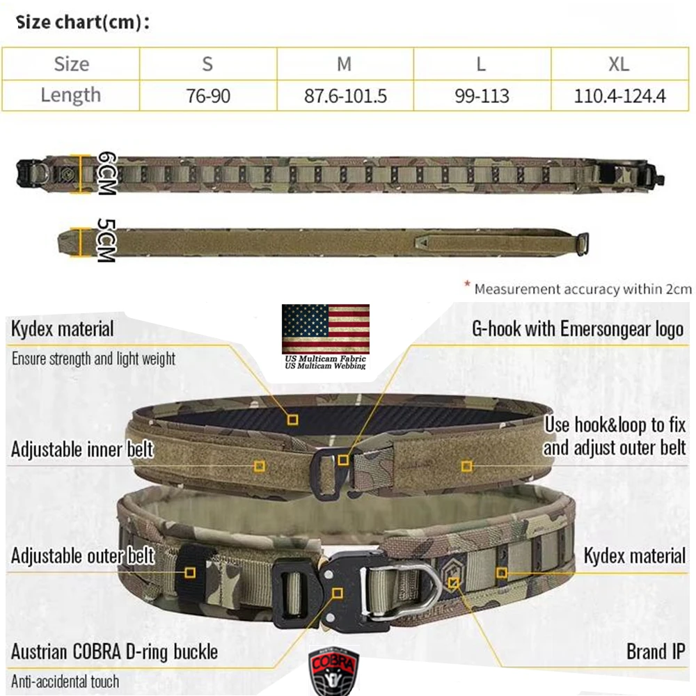 El paquete incluye 2: 1 cinturones interiores tácticos Emersongear ULB, puede elegir solo un cinturón interior