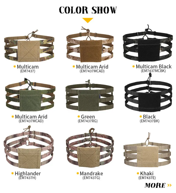 Emersongear CP style AVS/JPC special reduced version abdominal belt is a replacement accessory specially used for emersonear AVS reinstalled tactical vest. It can be a convenient way to change AVS reinstalled vest into simplified version by replacing the belt. When designing, we added PE reinforced panel in the middle layer of double-layer webbing as reinforcement, so that it has a reliable bearing capacity when mounting other tactical accessories.