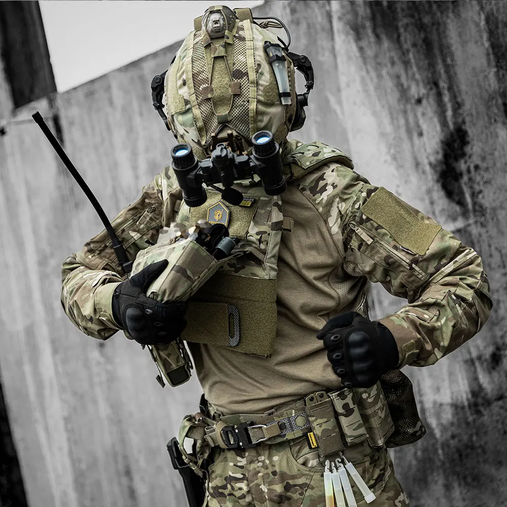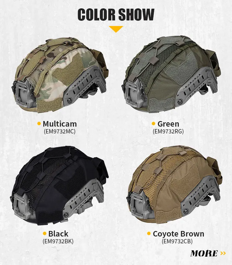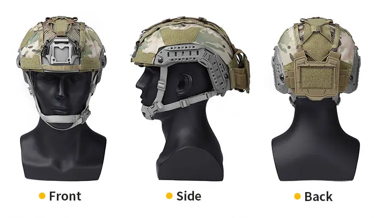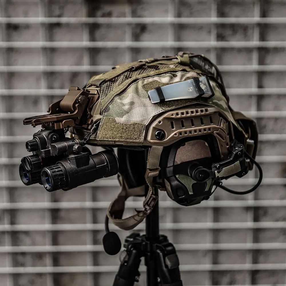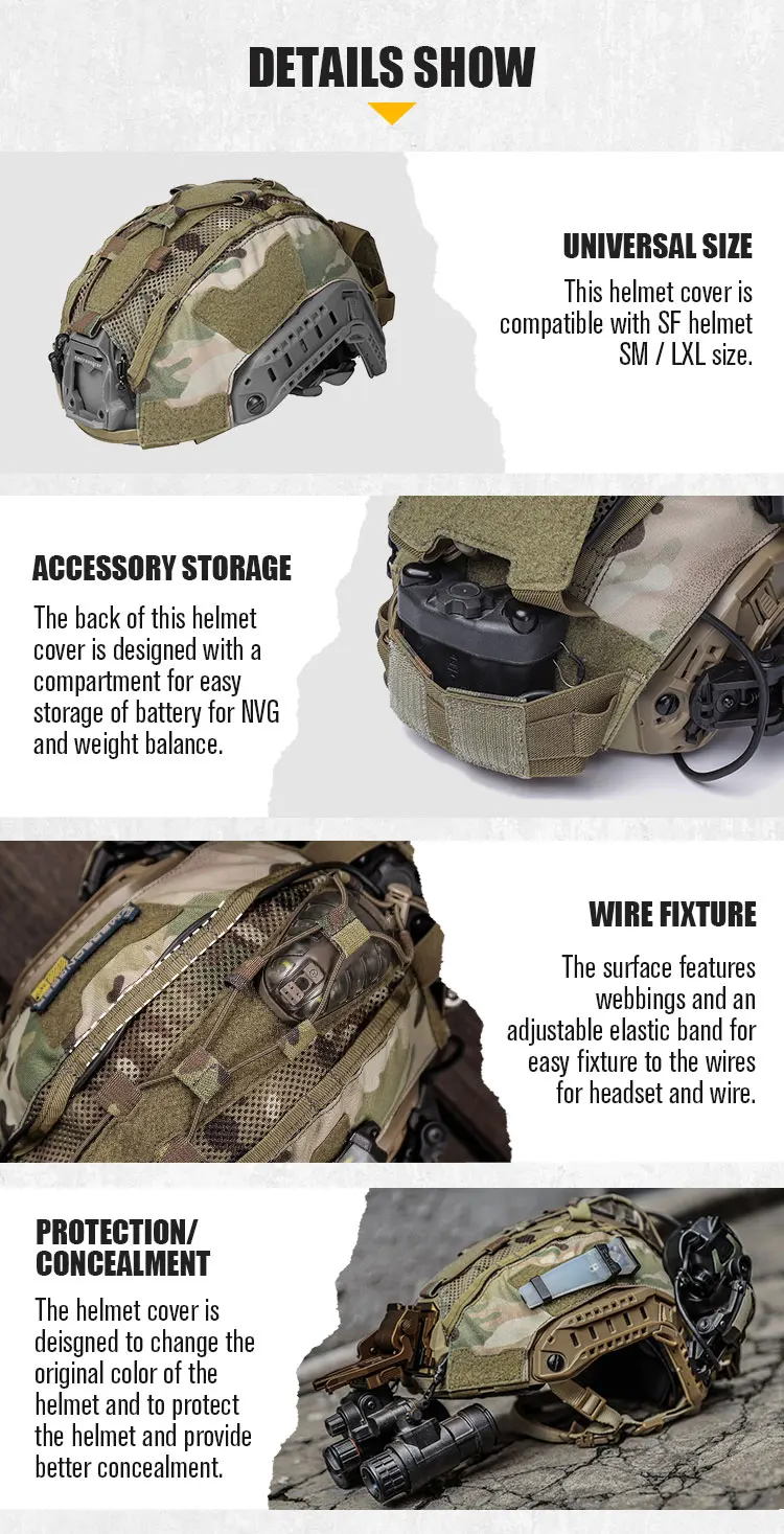 La parte posterior de esta funda para casco está diseñada con un compartimento para guardar fácilmente la batería para NVG y equilibrar el peso.La superficie cuenta con correas y una banda elástica ajustable para una fácil fijación a los cables de los auriculares y NVG.La funda del casco está diseñada para cambiar el color original del casco y proteger el casco y proporcionar una mejor ocultación.