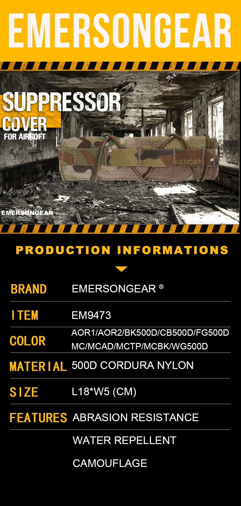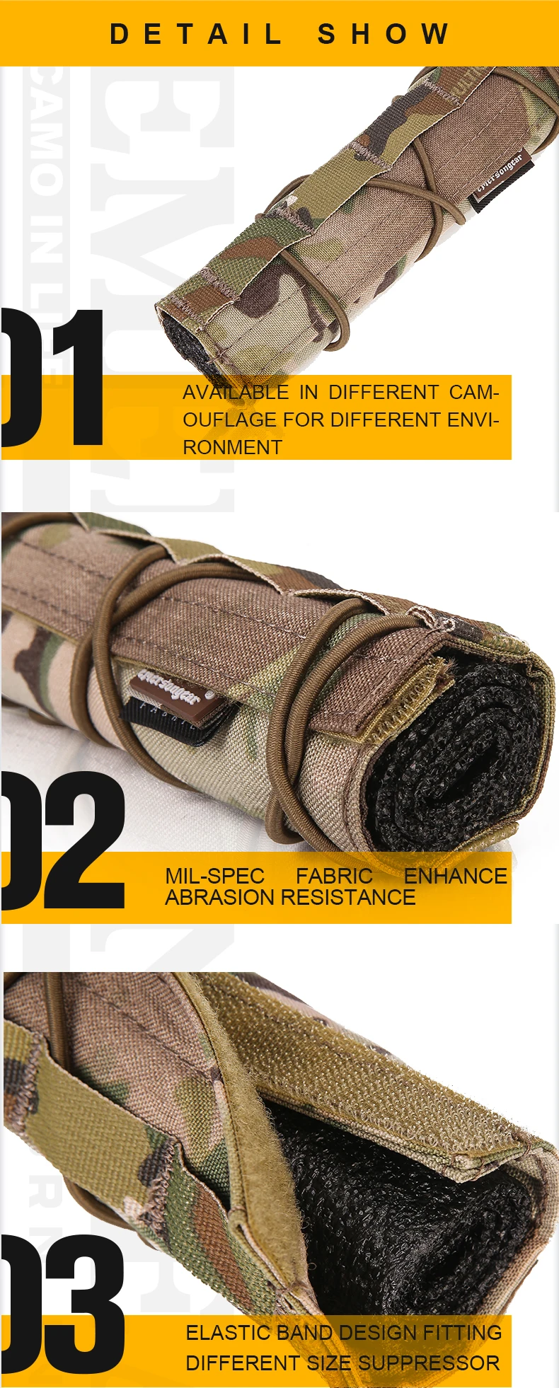Emersongear Tactical 18cm Airsoft Suppressor Cover Silencer Protective Cloth Tool Panel Muffler Case Pouch Bag Hunting Tube Gear Gear EM9473