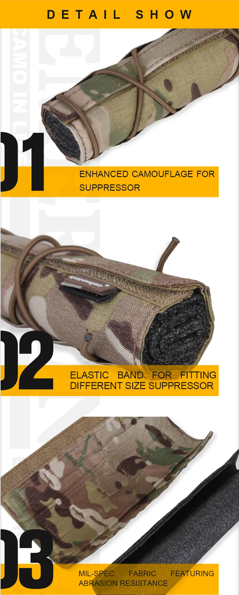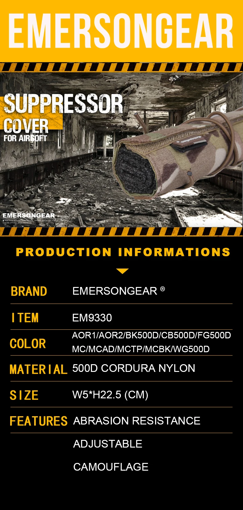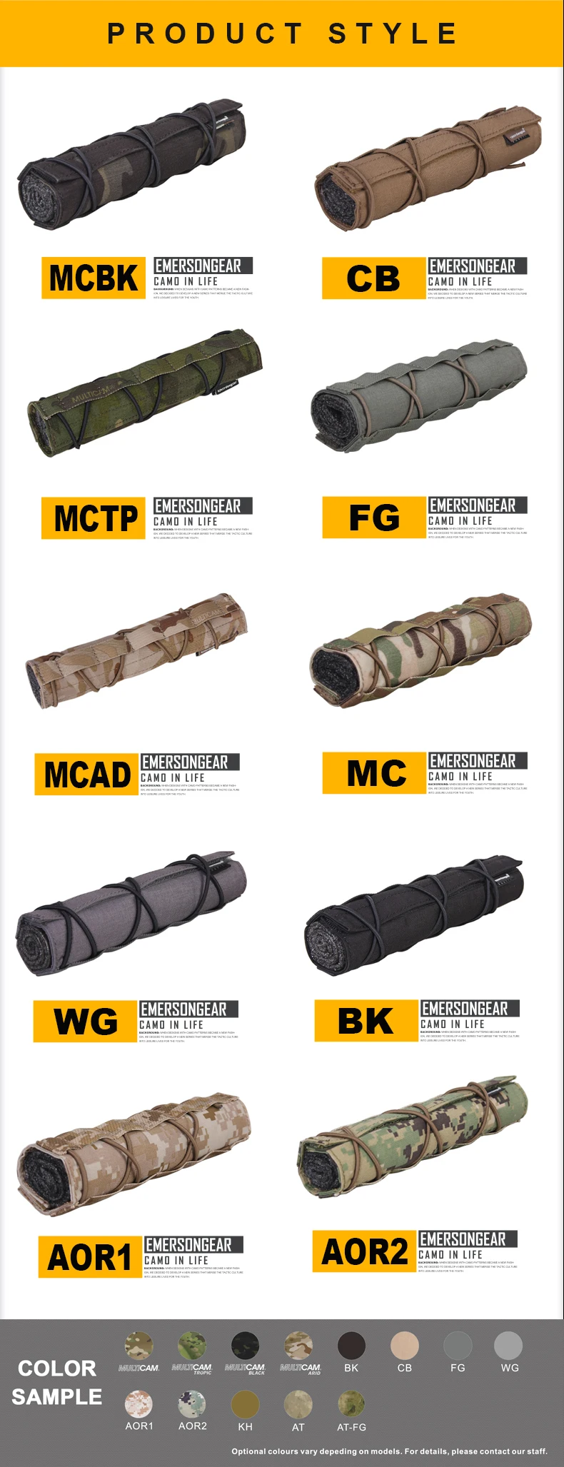 Emersongear 22cm Airsoft Suppressor Cover Silenciador Protector Estuche ajustable Ejército militar Liberación rápida Bolsa de caza táctica