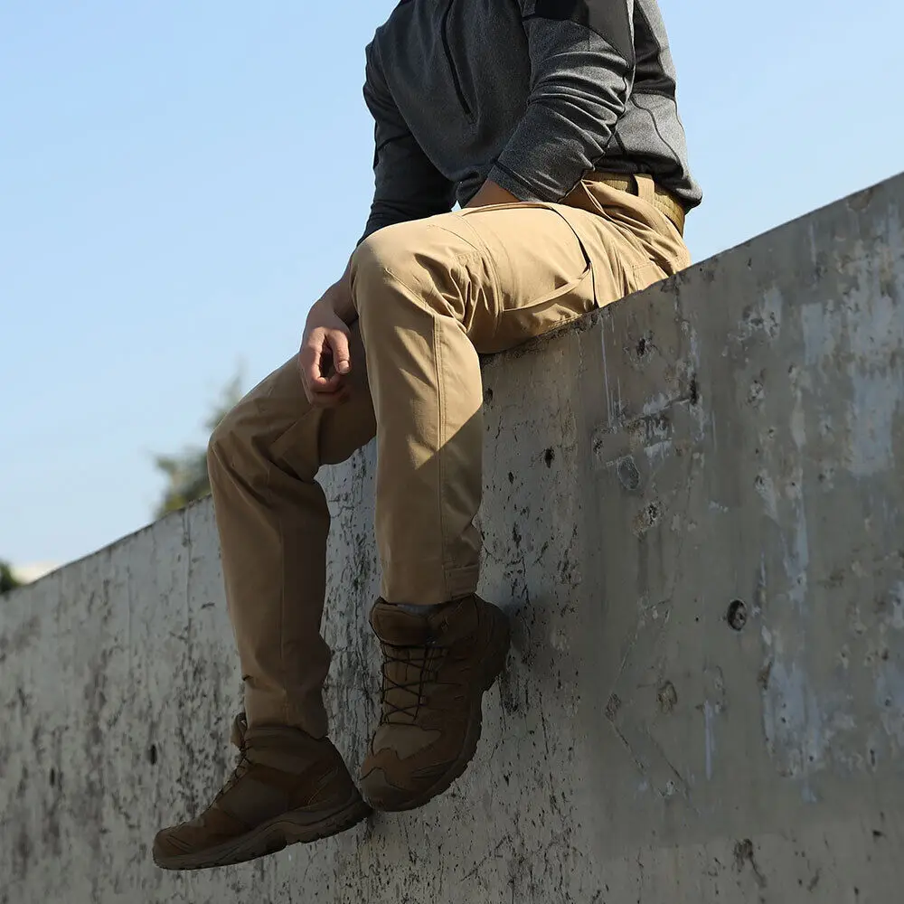 2.Versión ergonómica: la versión de ajuste general, diga adiós a la versión voluminosa de los pantalones tácticos, refuerza el triángulo debajo de la entrepierna, resiste el desgarro, guarde la rodilla y aumente la comodidad de flexión de la rodilla.