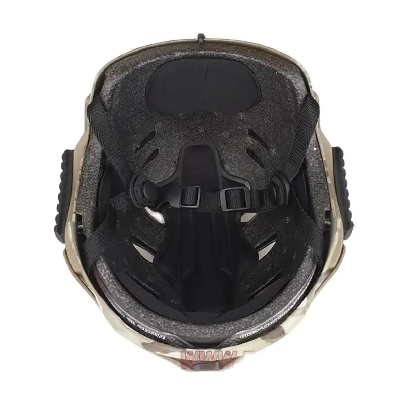 Details: Extensible: (1) The dried cuttlefish designed for helmets is the best equipment for carrying night vision devices and cameras. (2) Four pieces of Velcro are provided on the surface of the helmet, which can carry flashing lights, logos or other attachments that can be pasted arbitrarily. (3) Both sides of the helmet are equipped with special guide rails and 7-segment guide rails, which can be extended to carry common accessories. Ventilation system: There are 8 ventilation holes on the top of the helmet to keep the head ventilated and perspiration in the environment of intense exercise or sultry use, without being stuffy. Adjustable: Simplify unnecessary additional functions, and adjust the tightness of the helmet strap with a Japanese buckle.