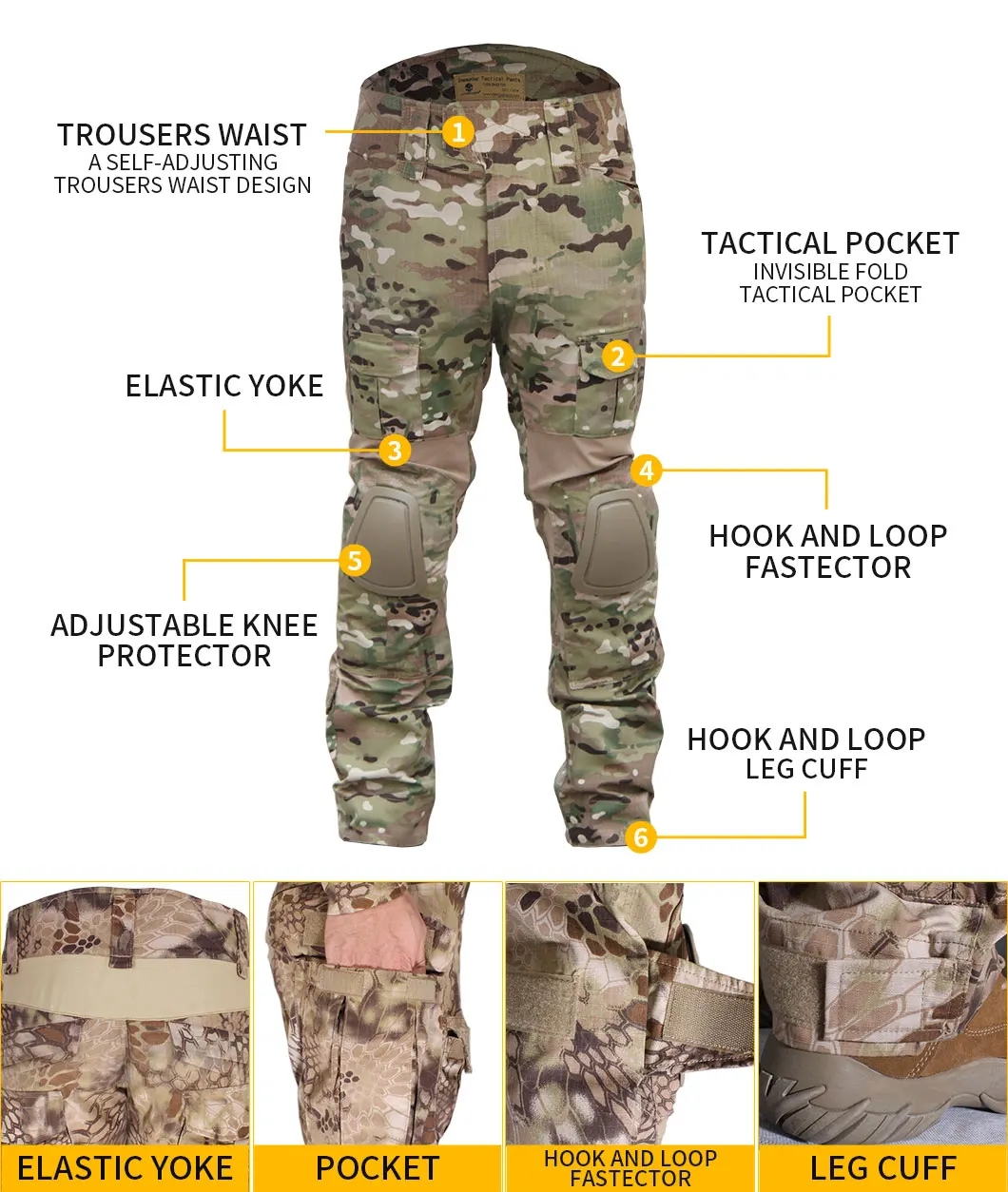 Lo más destacado del traje es el diseño del dispositivo de protección con estructura extraíble, que mejora enormemente la versatilidad del traje.Donde necesitamos estirarnos en movimiento, hemos agregado una estructura de tela elástica, que puede estirarse y estirarse libremente.El uso general de trajes de combate puede dar rienda suelta a las características del traje.La parte del cuerpo del traje de combate diseñada con "piel de rana" adopta el material repelente al agua y resistente a la abrasión de las regulaciones.La parte del baúl debe usarse junto con el chaleco táctico o el gancho para el pecho, por lo que el abrigo está hecho de un material de algodón agradable para la piel, que no solo reduce el peso sino que también mejora la comodidad humana.