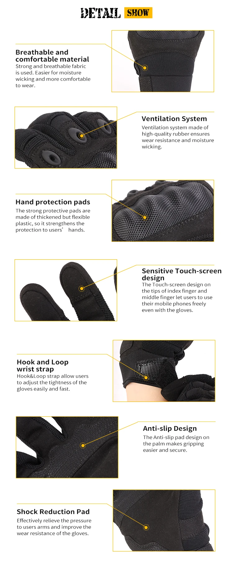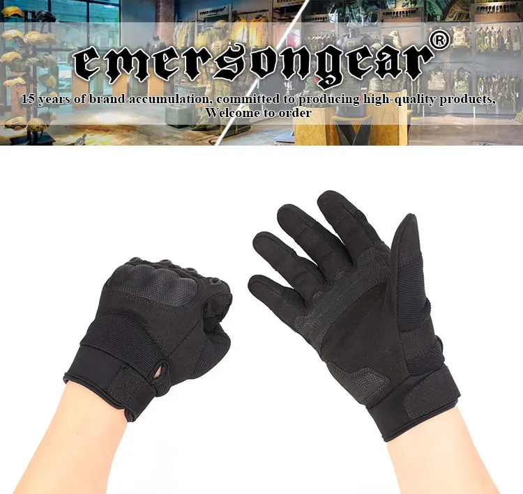 Emersongear, guantes tácticos de combate con dedos completos, equipo de protección para manos, ropa para caza, Airsoft, ciclismo, deportes, entrenamiento al aire libre BK