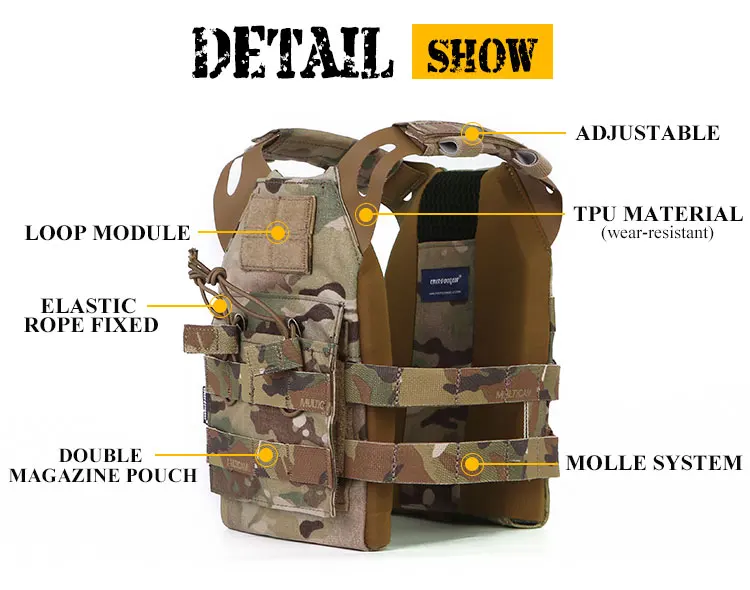 Chaleco táctico Emersongear JPC para niños, portador de placa MOLLE, equipo de protección modular para deportes al aire libre, Protector corporal, armadura de nailon ligero EM7352