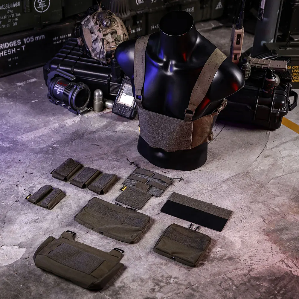 El producto se forma combinando el cuerpo del aparejo de pecho, la bolsa de accesorios y el panel de pecho extendido.La bolsa de accesorios y la superficie del aparejo para el pecho están diseñadas respectivamente con pelaje mágico y sistemas MOLLE.De acuerdo con las necesidades de uso del usuario, la forma combinada se reduce, aumenta o reemplaza, proporcionando múltiples esquemas de combinación para satisfacer las necesidades de diferentes escenarios.