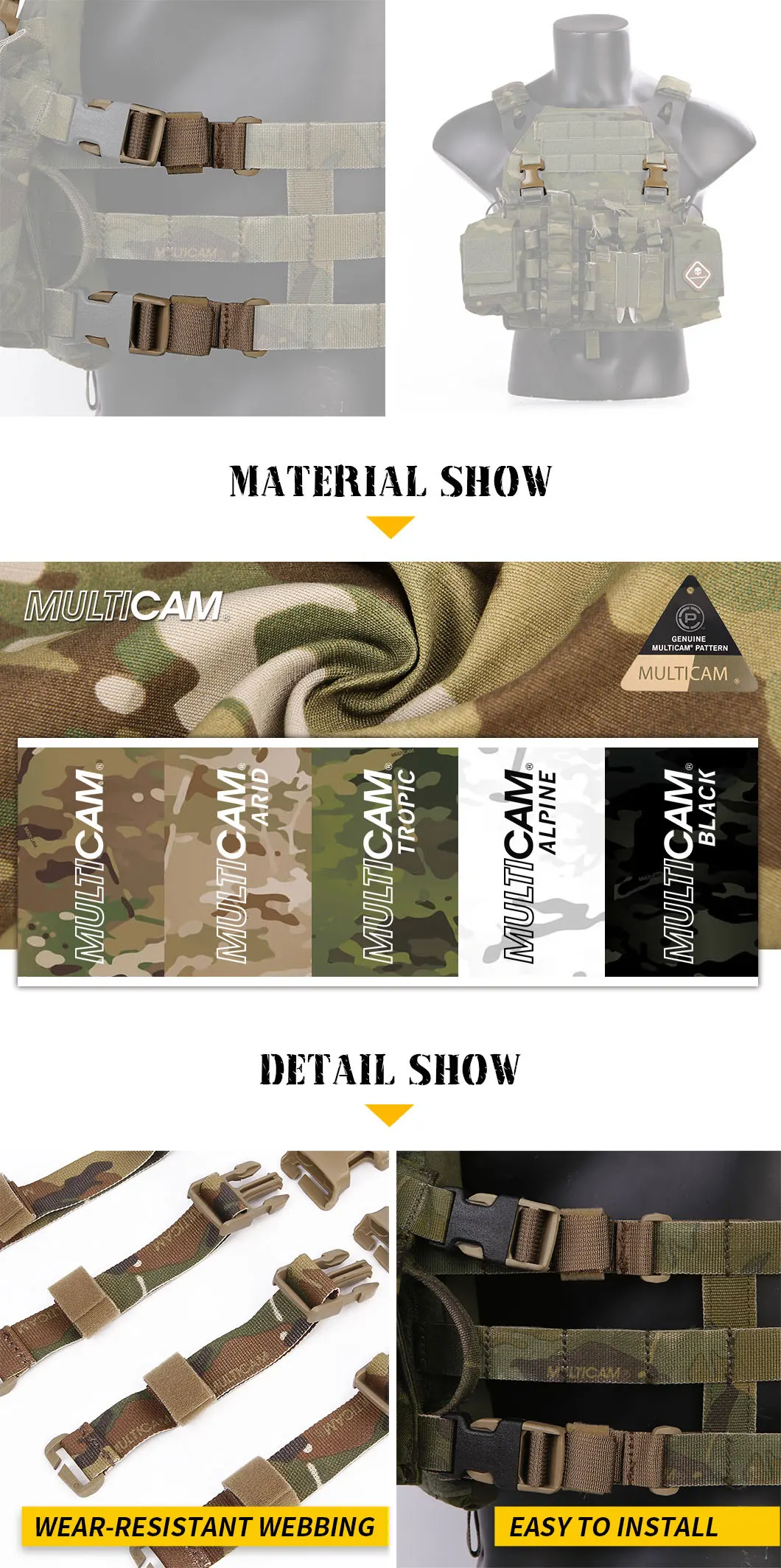 * Se utiliza para la conexión de diversos equipos tácticos, como chalecos tácticos y aparejos de pecho.