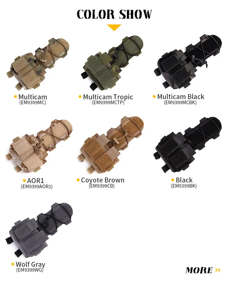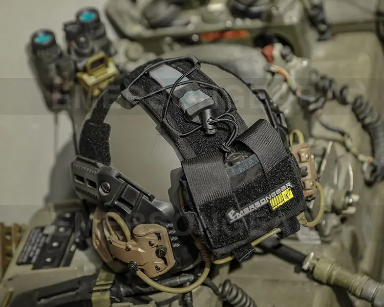 Emersongear MK2 BatteryCase for Helmet can be used with any current tactical helmet. The main inner compartment is used to place counterweight blocks, batteries and other small accessories to balance the weight of the night vision instrument on the forehead of the helmet. The front tongue of the counterweight bag is used to fix tactical identification lamps and other electronic equipment, and the outside is equipped with elastic bands to secondary fix the equipment.