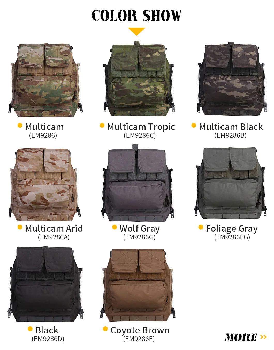 Mochila Emersongear Emerson mediante panel con cremallera para AVS JPC2.0 CPC, chaleco táctico, soporte de placa, mochila de combate, equipo táctico Airsoft
