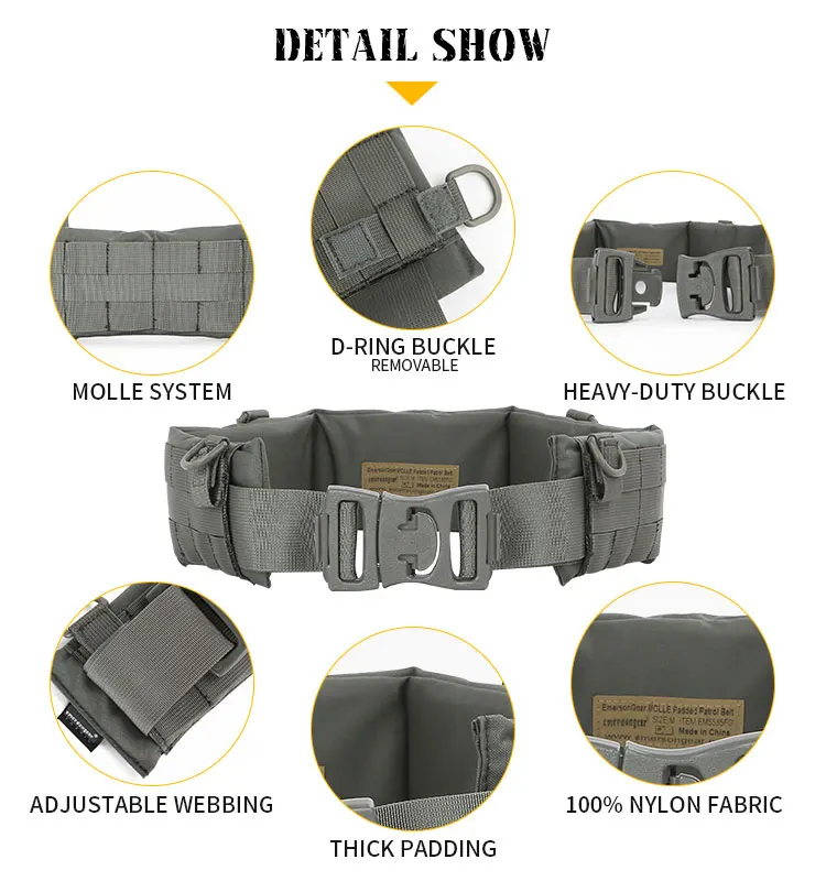 El paquete incluye: 1 cinturón de patrulla acolchado MOLLE Emersongear