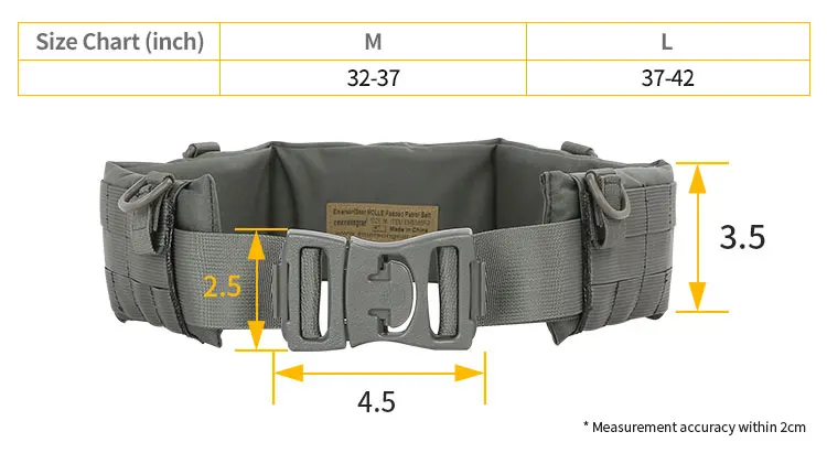 El paquete incluye: 1 cinturón de patrulla acolchado Emersongear MOLLE