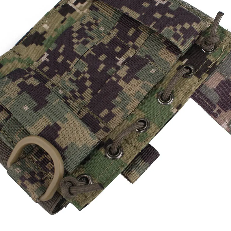 3.MOLLE system fixation: it can be fixed on any section of MOLLE webbing with a length of more than 2 grids