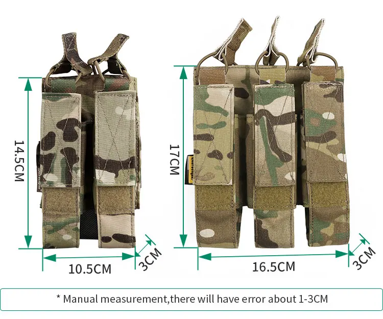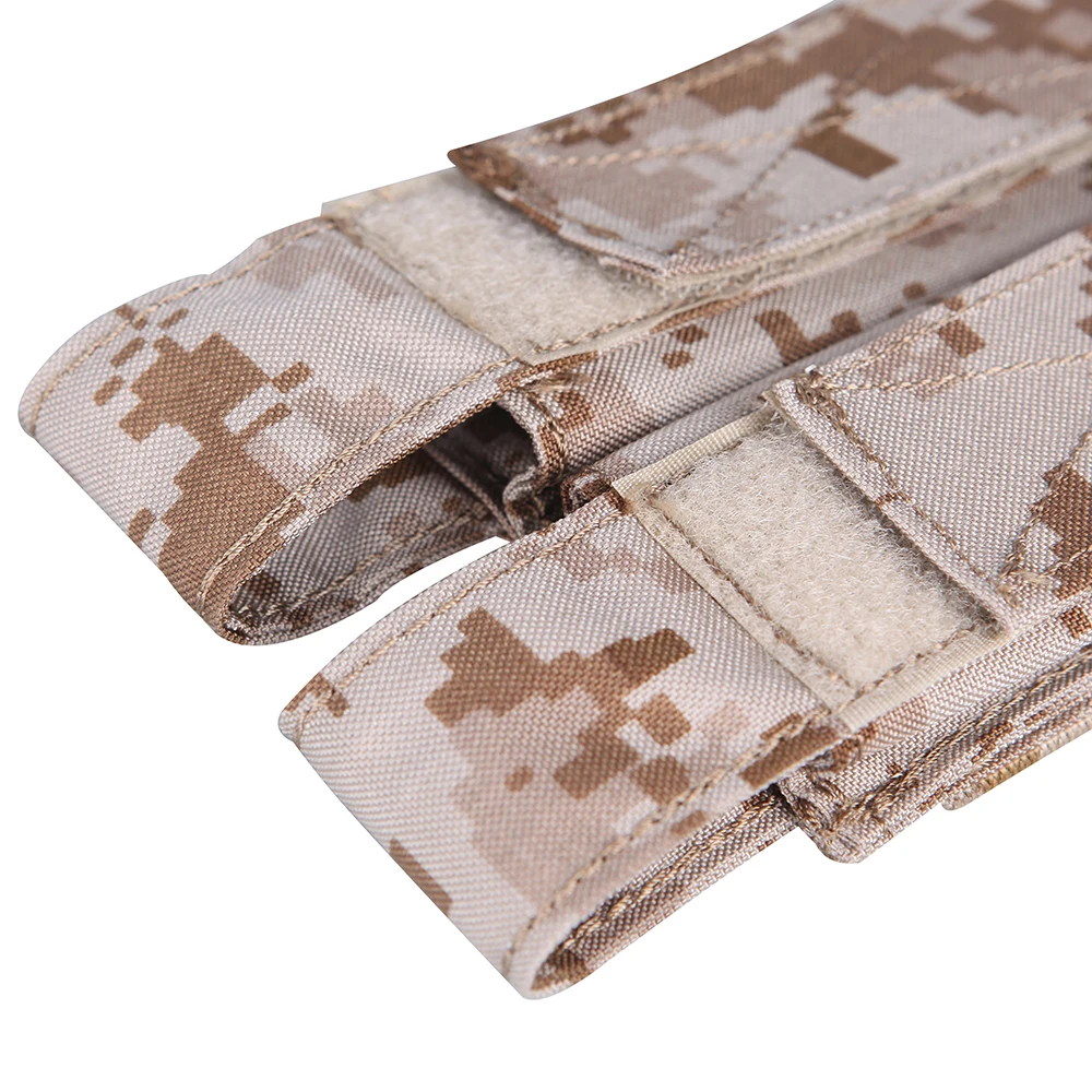 NYLON Cordura 500D estándar, que es duradero, resistente al desgaste y a prueba de salpicaduras.La característica de este producto es que la longitud del cuerpo del cargador se puede ajustar a través de la pasta mágica para adaptarse a diferentes tamaños de revistas.