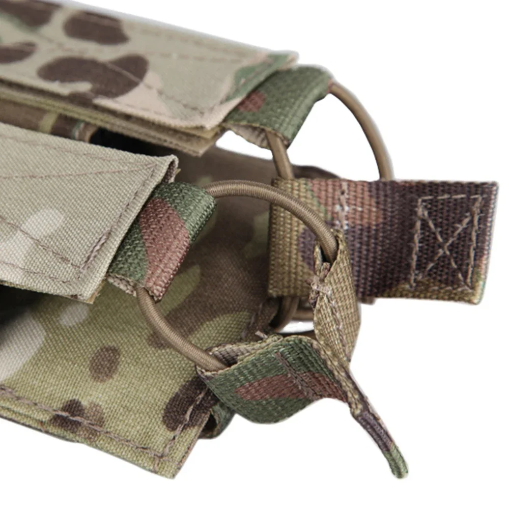 NYLON Cordura 500D estándar, que es duradero, resistente al desgaste y a prueba de salpicaduras.La característica de este producto es que la longitud del cuerpo del cargador se puede ajustar a través de la pasta mágica para adaptarse a diferentes tamaños de revistas.